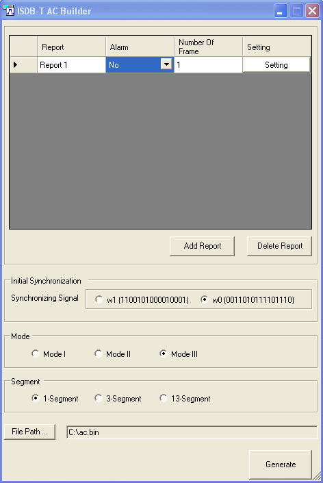 For one-seg ISDB-T: Test Pattern | TS File | TS File Wizard