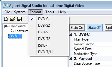 Click the on the menu bar to select the format of the signal to generate.