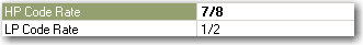 Double-click or use the drop-down menu to select the HP (High Priority) code rate of convolutional coder. This cell is only enabled when Transmissionis Hierarchical.