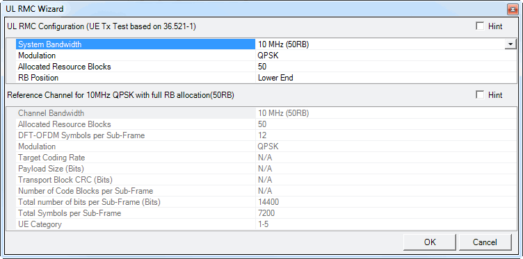 UL RMC Configuration (UE Test based on 36.521-1) |