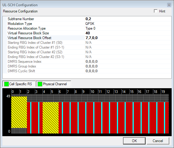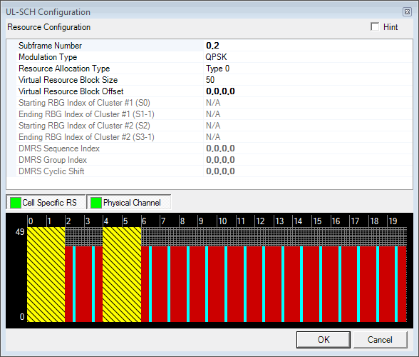 Figure 1. UL-SCH with subframe 2 added, 50 Resource Blocks, and 0 Offset