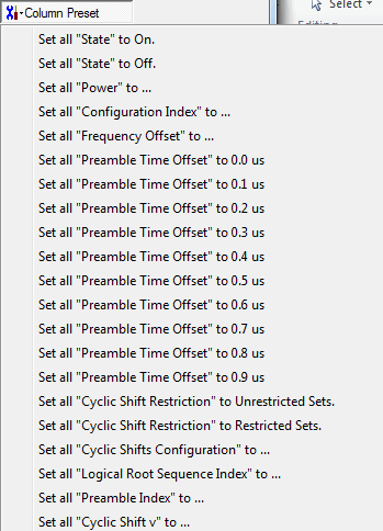 Double-click or use the drop-down menu to turn the selected PRACH burst on or off.