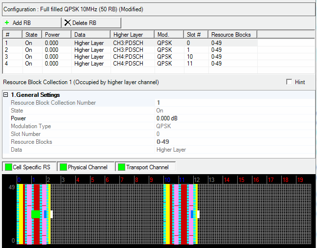 Before adding a resource block collection as described below, delete any existing transport channel, physical channel, or resource block collection that occupies the resource blocks that your new resource block collection will occupy. If you add a new resource block collection without first deleting a conflicting channel or resource block collection, a ”r;code conflicted” error occurs when you generate the waveform.