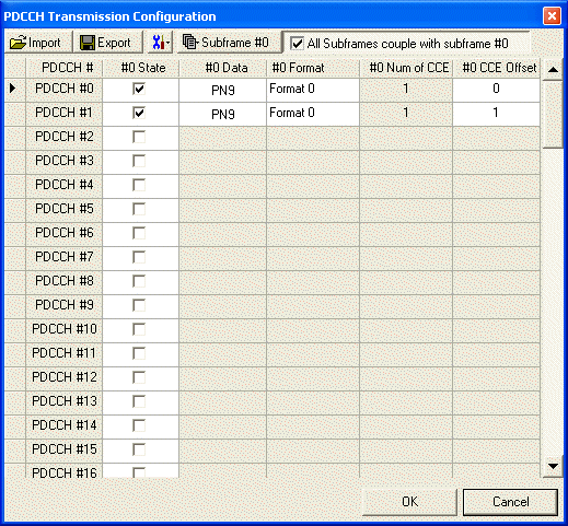Displays the control format indicator (1, 2, 3 or 4) for each subframe in the selected PCFICH channel. These values are set in the PDCCH Allocations cell.