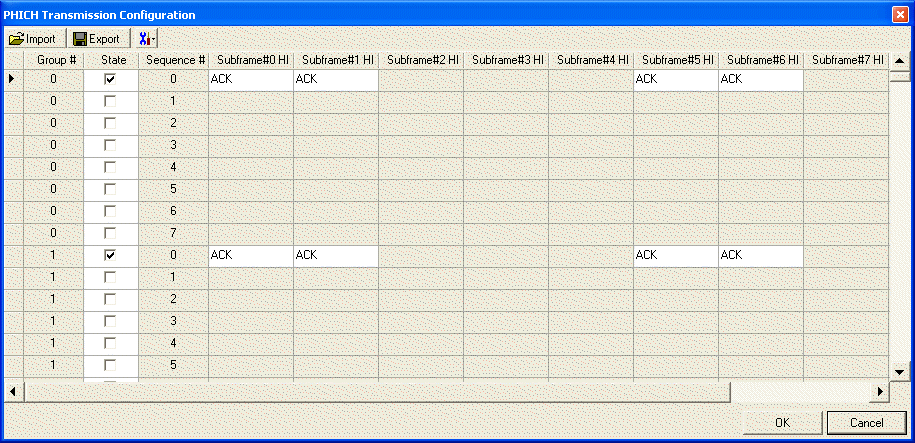 Double-click or use the drop-down menu to set the PHICH Duration to or for the selected PHICH channel. See 3GPP TS 36.211.