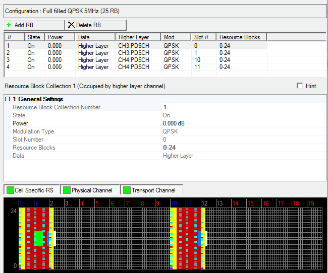 Before adding a resource block collection as described below, delete any existing transport channel, physical channel, or resource block collection that occupies the resource blocks that your new resource block collection will occupy. If you add a new resource block collection without first deleting a conflicting channel or resource block collection, a ”code conflicted” error occurs when you generate the waveform.