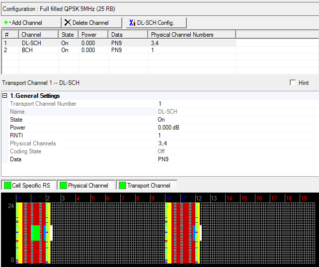 You can make changes to an already configured DL-SCH channel by selecting the channel and clicking the DL-SCH Configuration button. This button opens the Configure DL-SCH window for the selected channel.