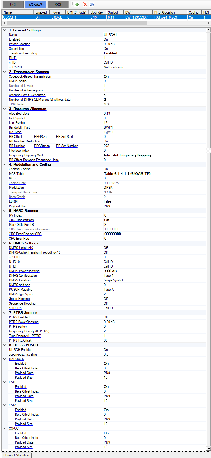 Only visible when Interlaced transmission is off. Second hop PRB is visible when intra-slot frequency hopping or inter-slot frequency hopping is enabled. |
