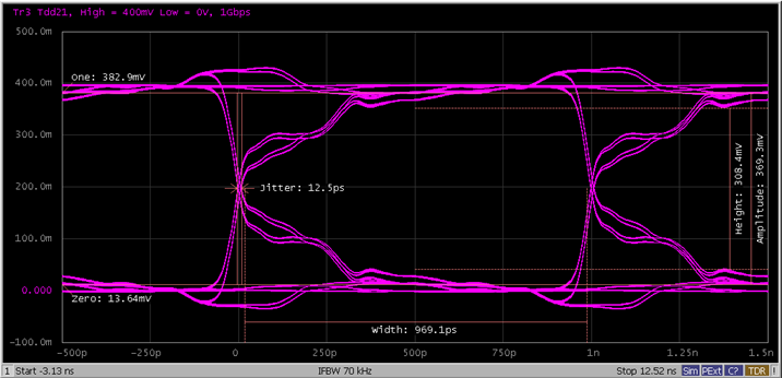 The eye diagram (Trace 3) similar to the one shown below is displayed.