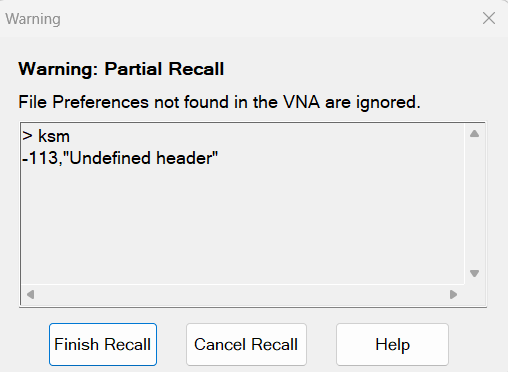 Ext Device: De-activate on PRESET and recall. External devices remain active when the VNA is Preset or when a Instrument State is recalled.