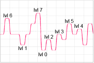 PAM8 waveforms that have eight logic levels and eye diagram with seven eyes.![]() ![]() |